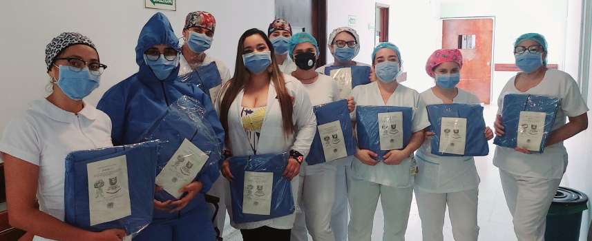 50 auxiliares de enfermería que desempeñan sus labores en el Hospital de Sur de Armenia recibieron trajes de protección desechables para la atención segura de pacientes con posibles casos de Covid-19.